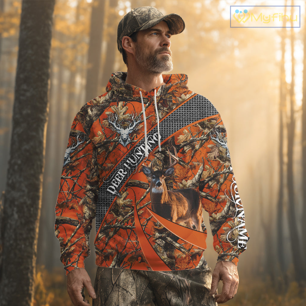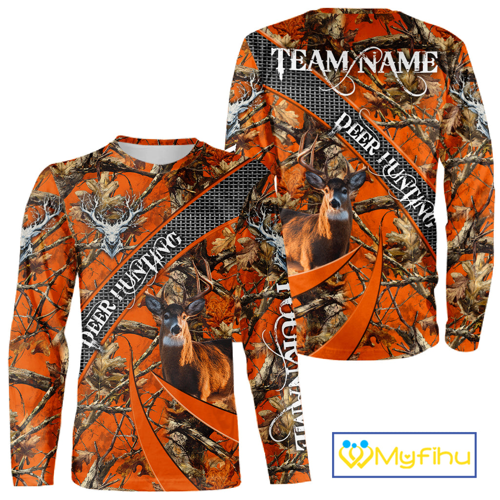 Orange Camo Deer Hunting Shirt 3D All Over Print Personalized Team Name Gift for Hunters NHT12