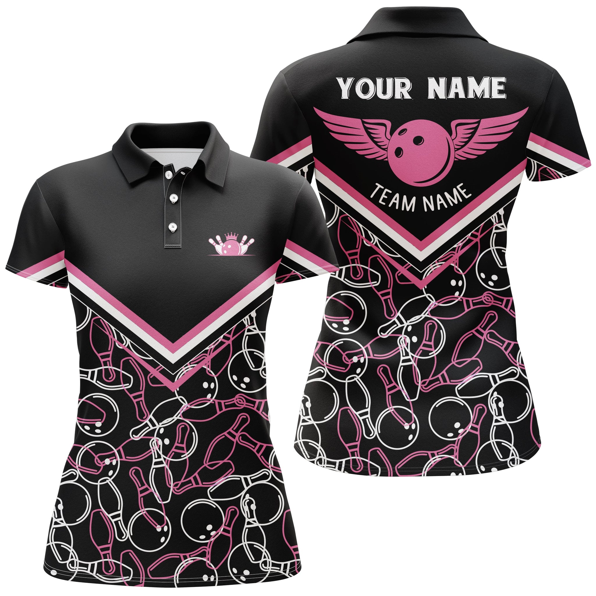 Personalized 3D bowling shirts for women, Custom pink Short Sleeve Polo Bowling Shirts for Girls NQS4555