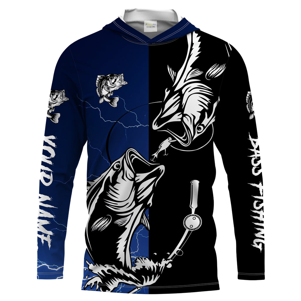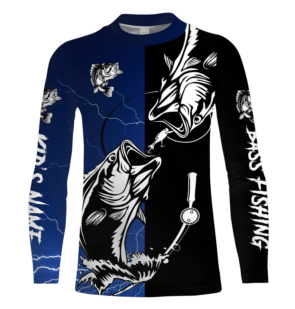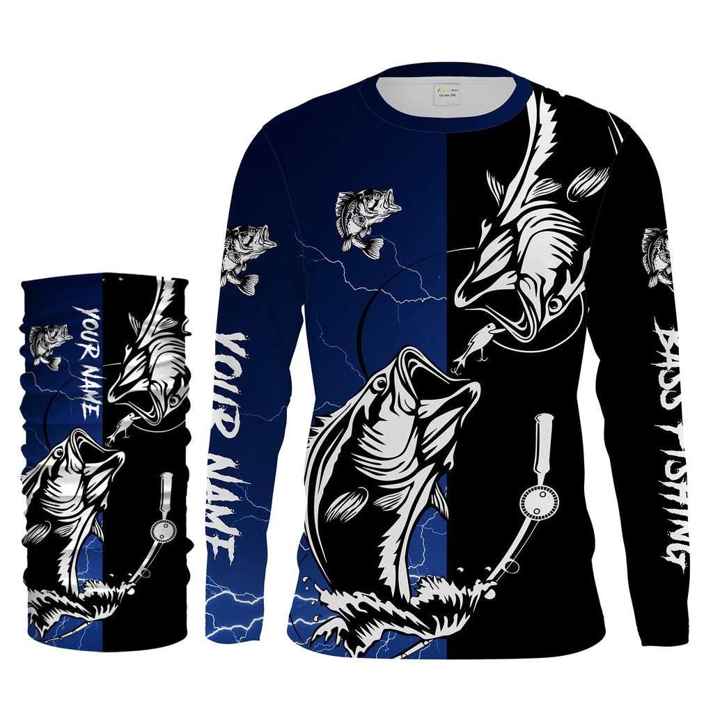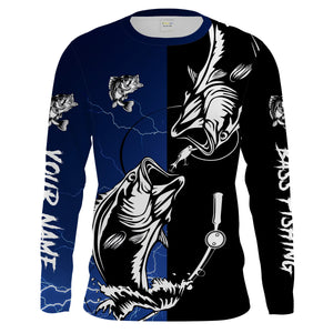 Bass fishing tattoo blue shirt UV protection Customize name fishing shirts NQS1462