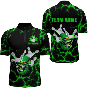 Personalized Bowling Patrick Day Shirt for Men Lucky Bowling Team Jersey Green Bowling Quarter-Zip Shirt QZT220