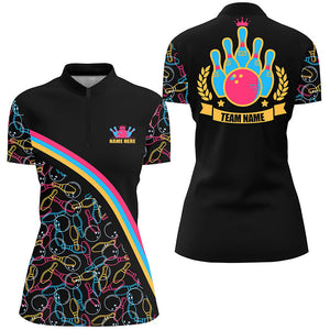 Personalized bowling Quarter Zip shirts for women Custom name pink bowling pattern team shirts NQS4564