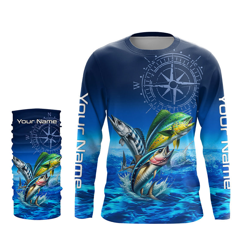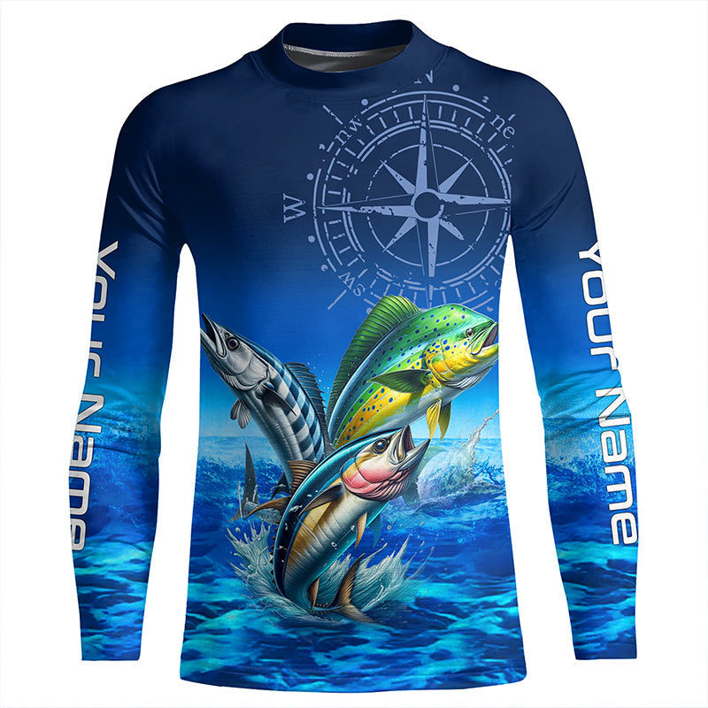 Personalized Mahi Mahi, Wahoo, Tuna Blue Performance Fishing Shirt, compass offshore tournament Shirts NQS5866