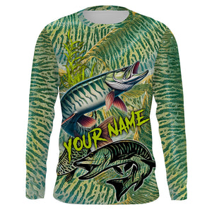 Personalized Muskellunge Fishing jerseys, Musky green scales long sleeve fishing shirts NQS3684