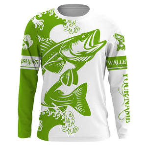 Personalized Walleye fishing tattoo jerseys, Walleye Long Sleeve Fishing tournament shirts | Green NQS3767