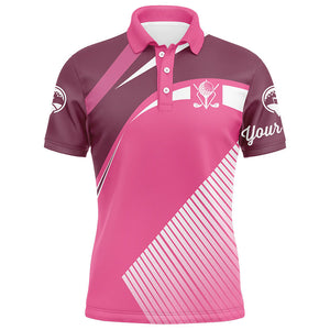 Pink Mens golf polos shirts custom golf tops for mens, personalized unique golf gifts NQS7128
