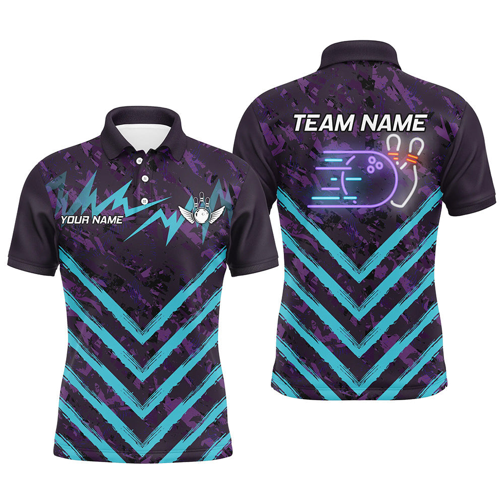 Purple Camo Lightning Storm Bowling Shirts For Men Custom Bowling Team Jerseys with name | Cyan Blue NQS8811