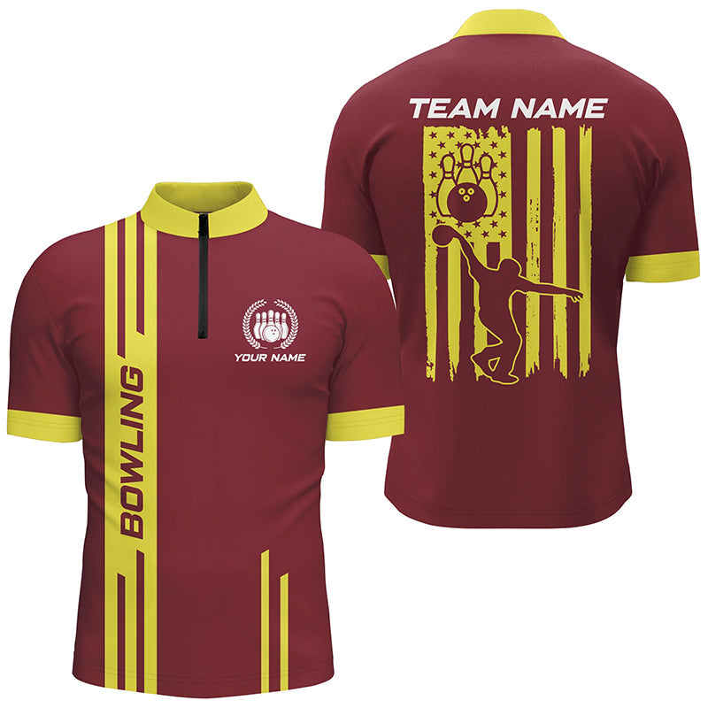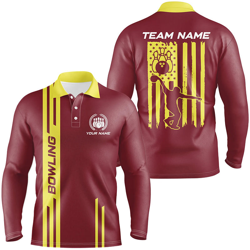 Red and Yellow Retro Bowling Shirts For Men Custom American Flag Patriotic Bowling Team League Jerseys NQS8407