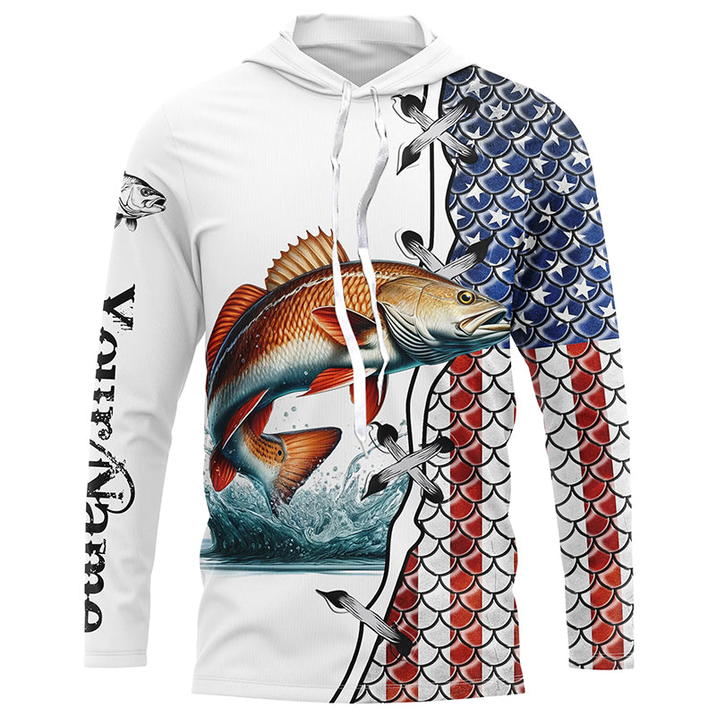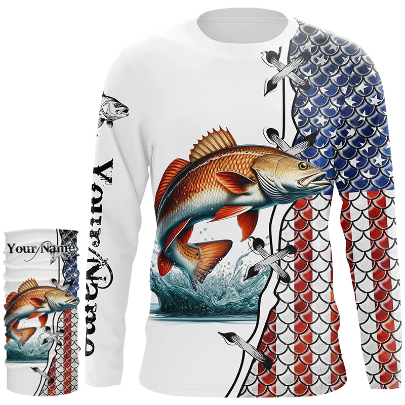 Redfish puppy drum fishing American flag patriotic 4th July Custom performance fishing shirts NQS2073