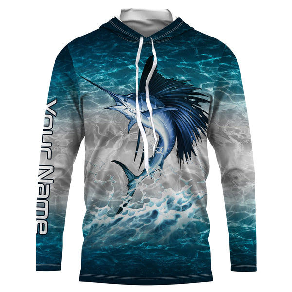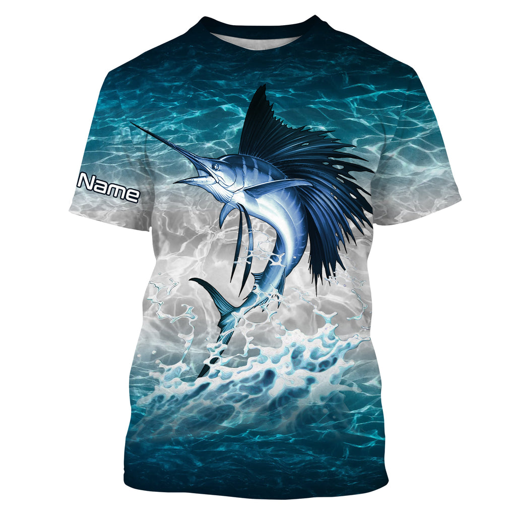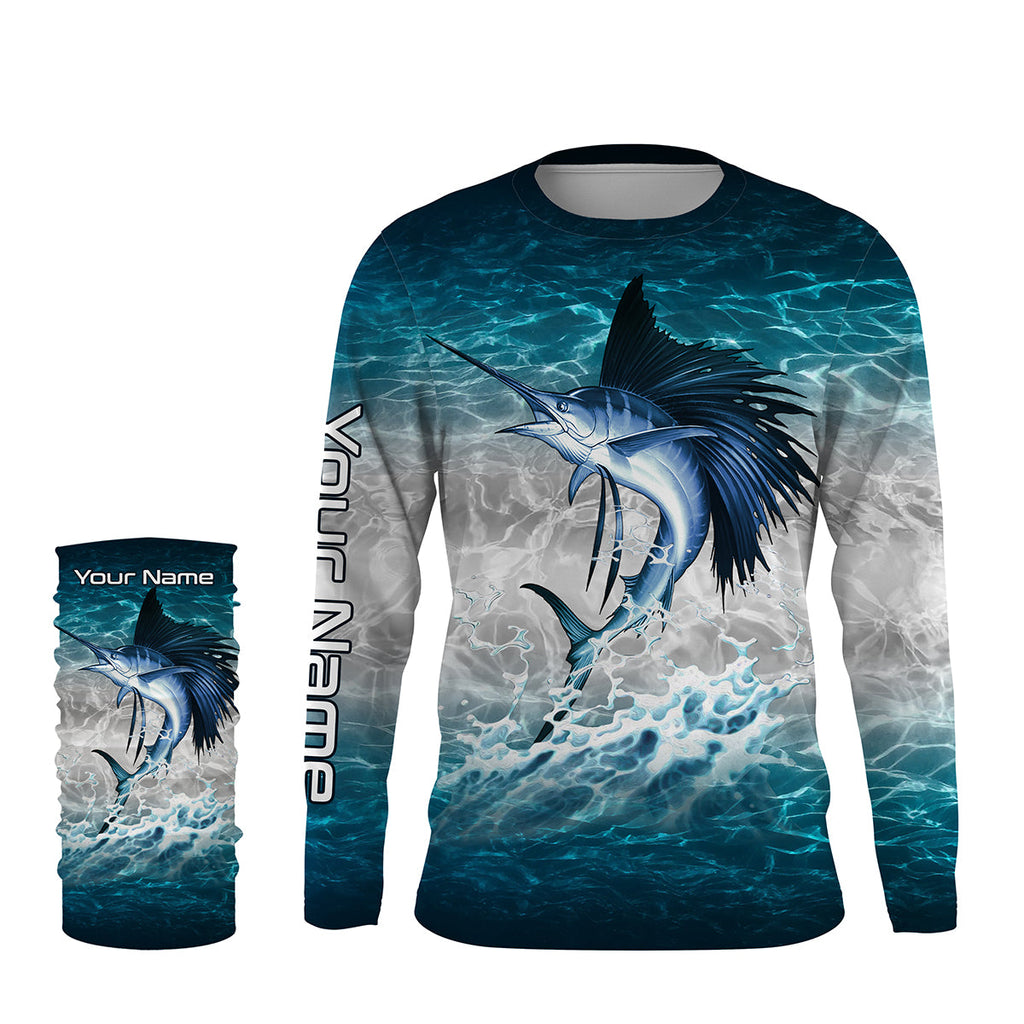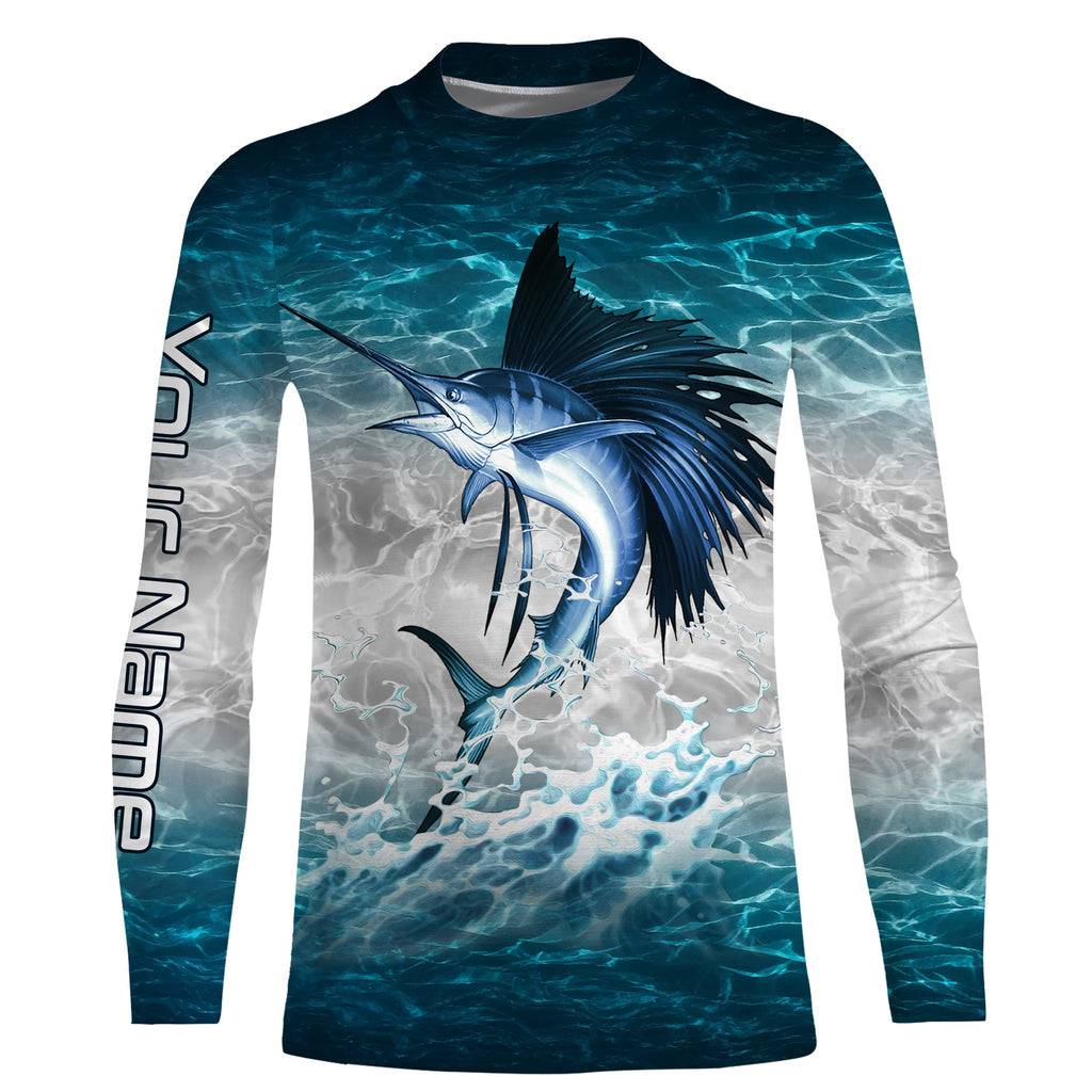 Sailfish fishing blue sea water camo Custom Name performance long sleeve fishing shirts uv protection NQS3663