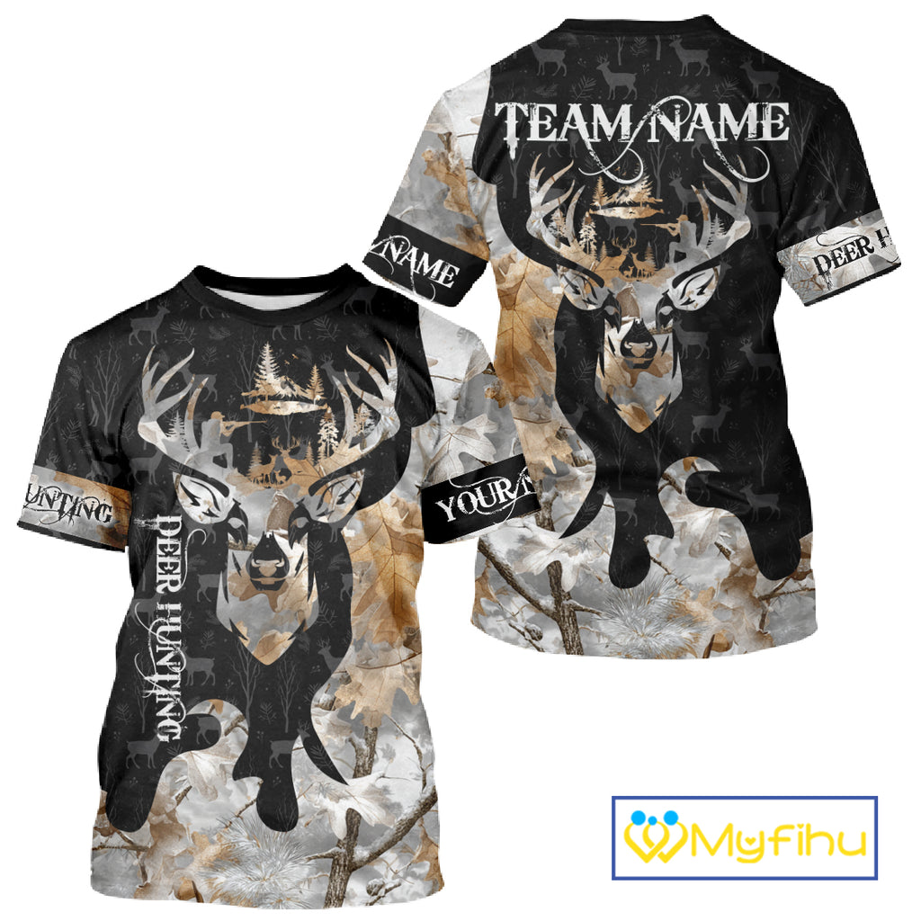 Snowfall Deer Hunting Hoodie, Longsleeves Shirt – Winter Camo Custom Name for Big Game Hunters NBT33