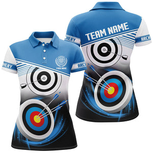 Personalized Name Archery Polo Shirts For Women Custom Blue Archery 3d Target Shirts, Archery Uniform TDM0529