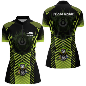 Custom Green Neon Billiard Balls 3D Skull Women Quarter-Zip Shirt 8 Ball Pool Jerseys Shirts TDM0696