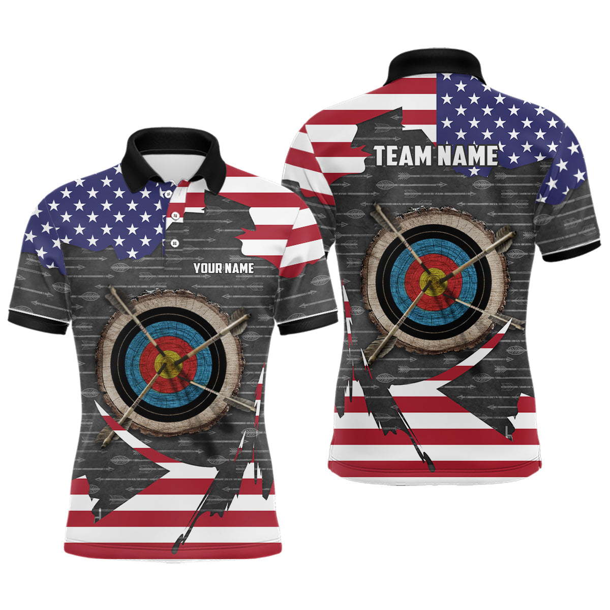 Retro Archery 3d Target Personalized US Flag Polo Shirts For Men, Patriotic Archery Jerseys Shirts TDM0708