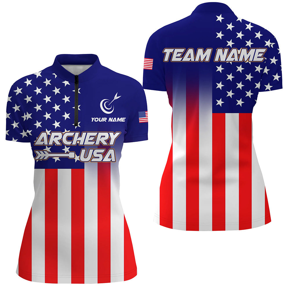US Flag Custom Full Printing Archery Women Quarter-Zip Shirts, Patriotic Team Archery Jersey TDM0713