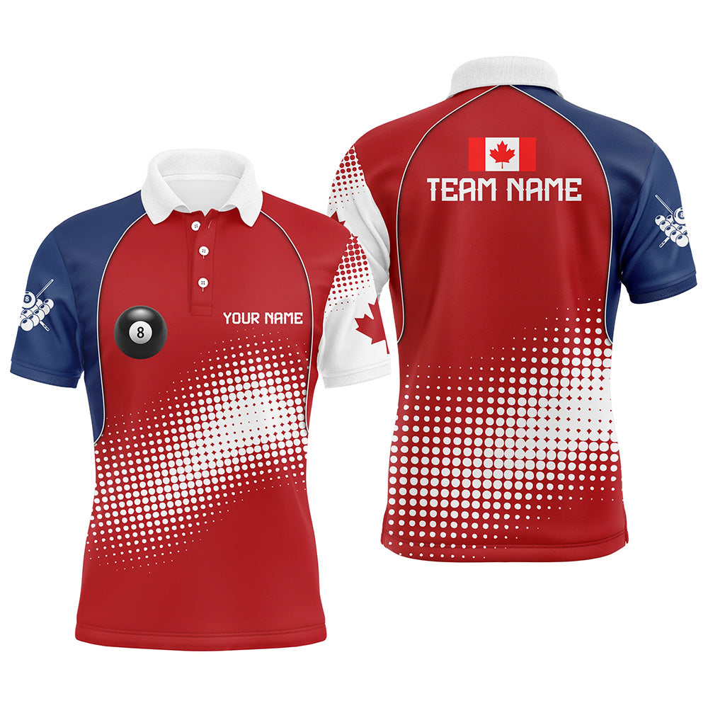Personalized Canadian Flag Billiard Men Polo Shirts, Patriotic Canada Billiard Team Uniform TDM0718