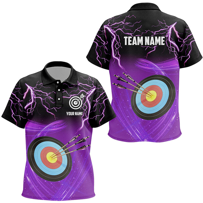 Custom Archery 3d Target Thunder Lightning Polo Shirts For Kid, Best Archery Team Shirts |Purple TDM0739