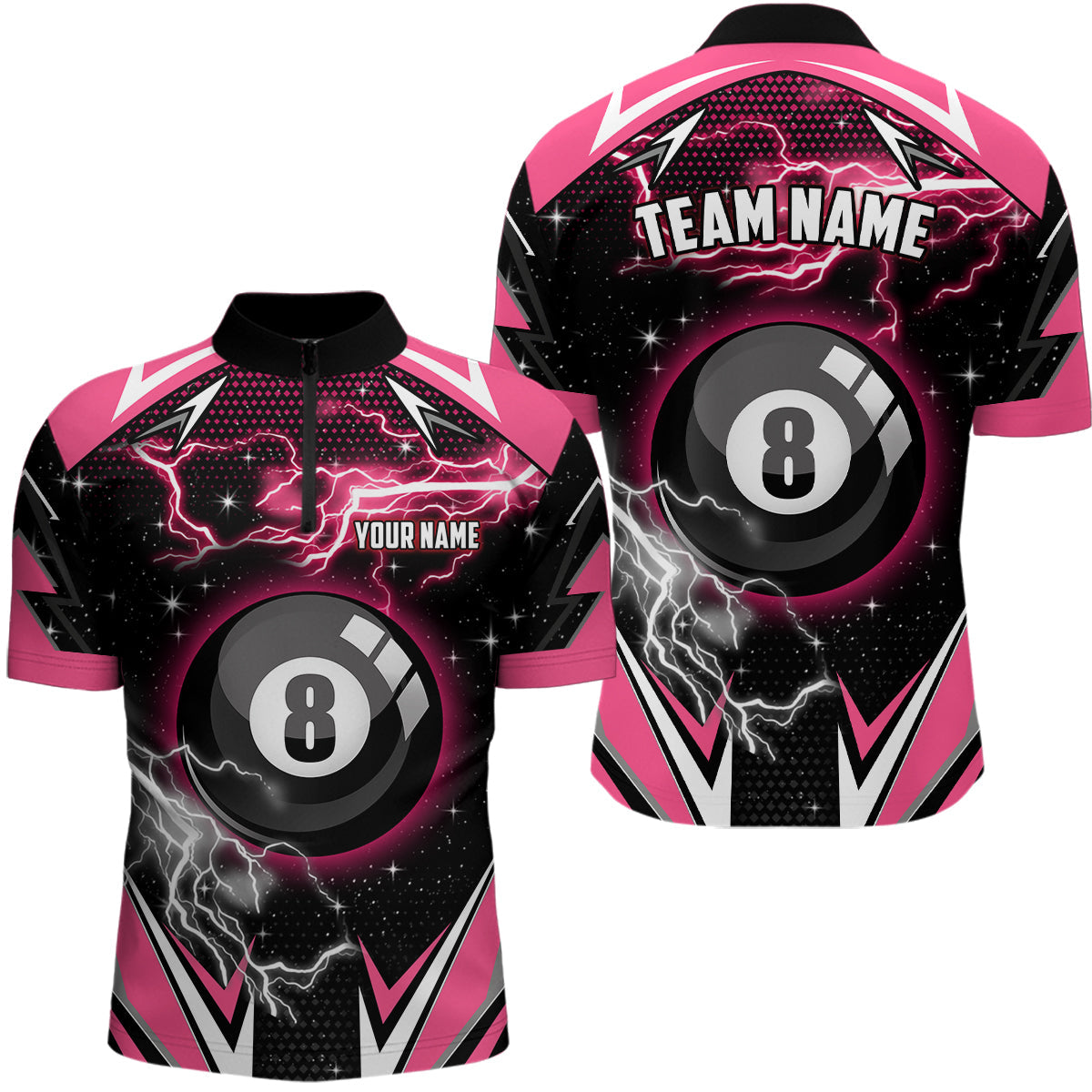 Pink 8 Ball Billiard Jersey Custom Men Quarter-Zip Shirts, Billiard Valentine Sport Shirts TDM0918