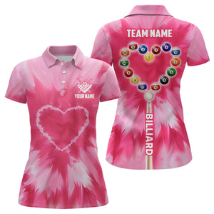 Personalized Pink Tie Dye With Heart Billiard Women Polo Shirts, Billiard Valentines Day Shirts Gifts TDM0924
