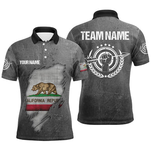 Personalized Grunge California Archery Men Polo Shirts, Custom California Flag Shirts For Archers TDM0931