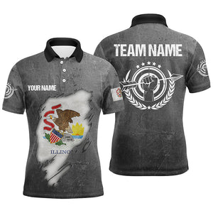Personalized Grunge Illinois Archery Men Polo Shirts, Custom Illinois Flag Shirts For Archers TDM0932