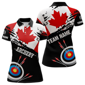 Personalized Grunge Canada Flag Archery Women Polo Shirts, Custom Patriotic Canadian Archery Shirts TDM0936
