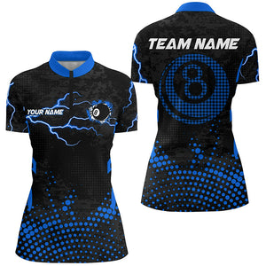 Personalized Blue 8 Ball Point Billiard Women Quarter-Zip Shirts, Billiards Apparel Clothing TDM0947