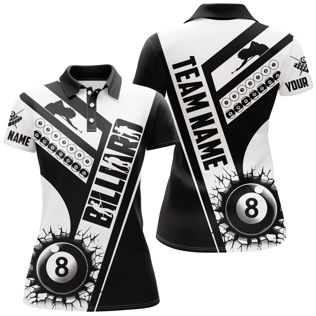 Custom Black White Cracky Billiard 8 Ball Pool Women Polo Shirts, Unique Pool Balls Shirts For Team TDM0954