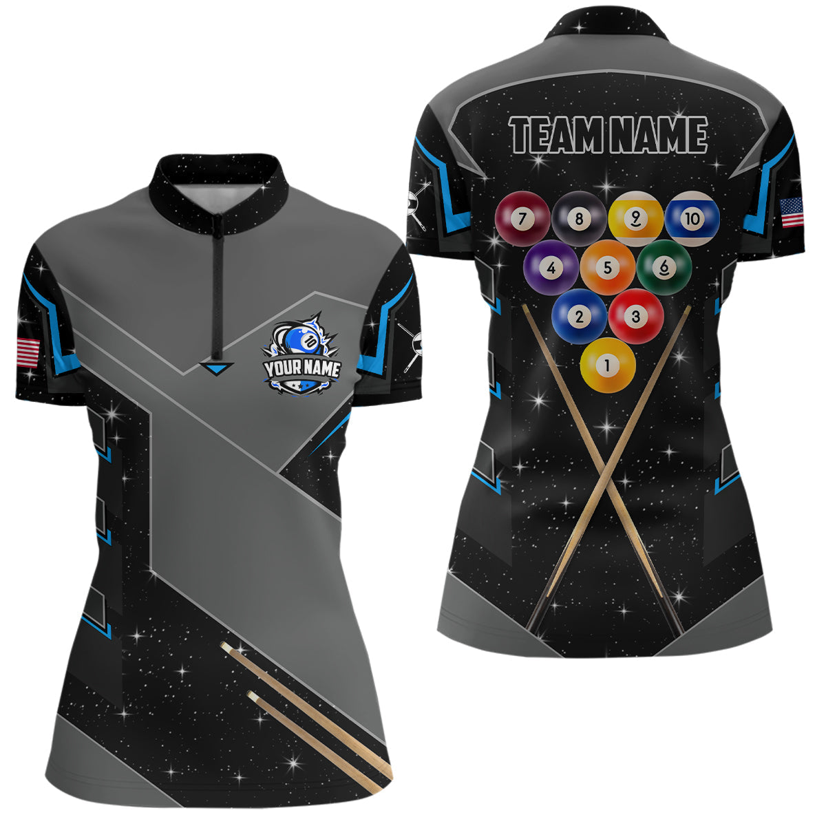 Personalized 10 Ball Pool Billiard Women Quarter-Zip Shirts, 9 Ball Billiard Attire Jerseys TDM0959