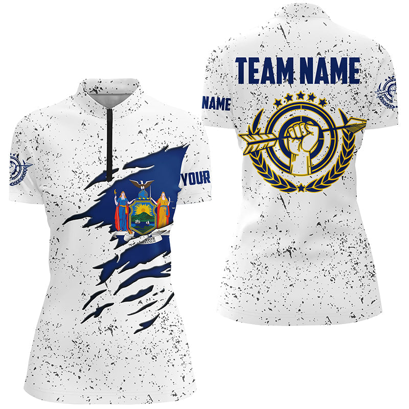 Grunge New York Archery Women Quarter-Zip Custom Patriotic New York Flag Shirts For Archers TDM0961