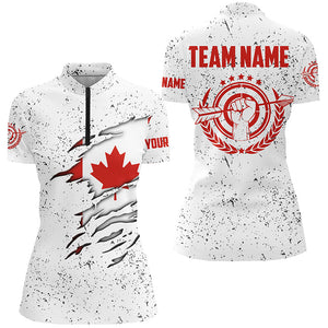 Grunge Canada Archery Women Quarter-Zip Custom Patriotic Canadian Flag Shirts For Archers TDM0963