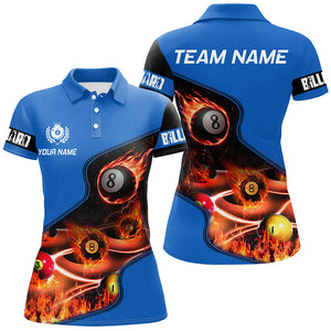Personalized Master Billiard Balls Flame 3D Women Polo Shirts, Blue Billiard Jersey For Pool Player TDM0978