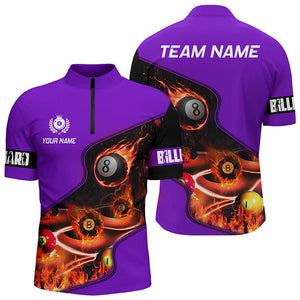 Personalized Master Billiard Balls Flame 3D Men Quarter-Zip Shirts, Purple Billiard Jersey TDM0980