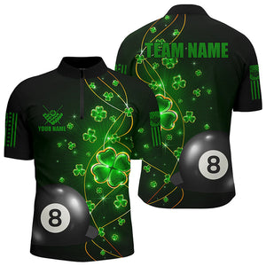 8 Ball Pool Luckiest Shamrock Men Quarter-Zip Shirt Custom St Patrick Day Billiard Shirts TDM0988