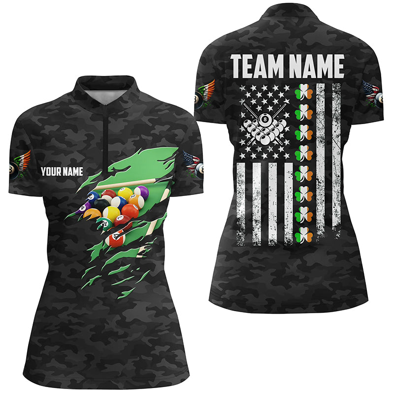 Billiard St Patrick Day Vintage US Flag Women Quarter-Zip Shirts, Patriotic Billiard Jerseys TDM1000