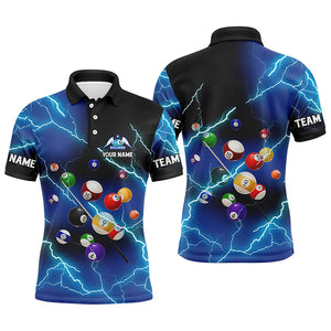 Personalized Billiard Balls Thunder Lightning Blue Version Custom Name 3D Polo Shirts For Men TDM1001