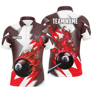 Personalized Red Flaming 8 Ball Pool Jerseys Men Polo Shirts, Best Team League Billiard Shirts TDM1008