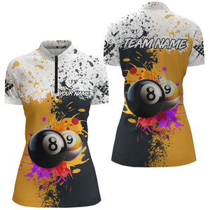 Personalized Billiard 8 Ball & 9 Ball Grunge Style Women Quarter-Zip Shirts, Billiard Attire TDM1015