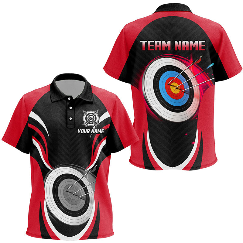 Red Archery Jerseys Personalized Archery 3d Target Custom Kid Polo Shirts, Best Archery Outfits TDM1018