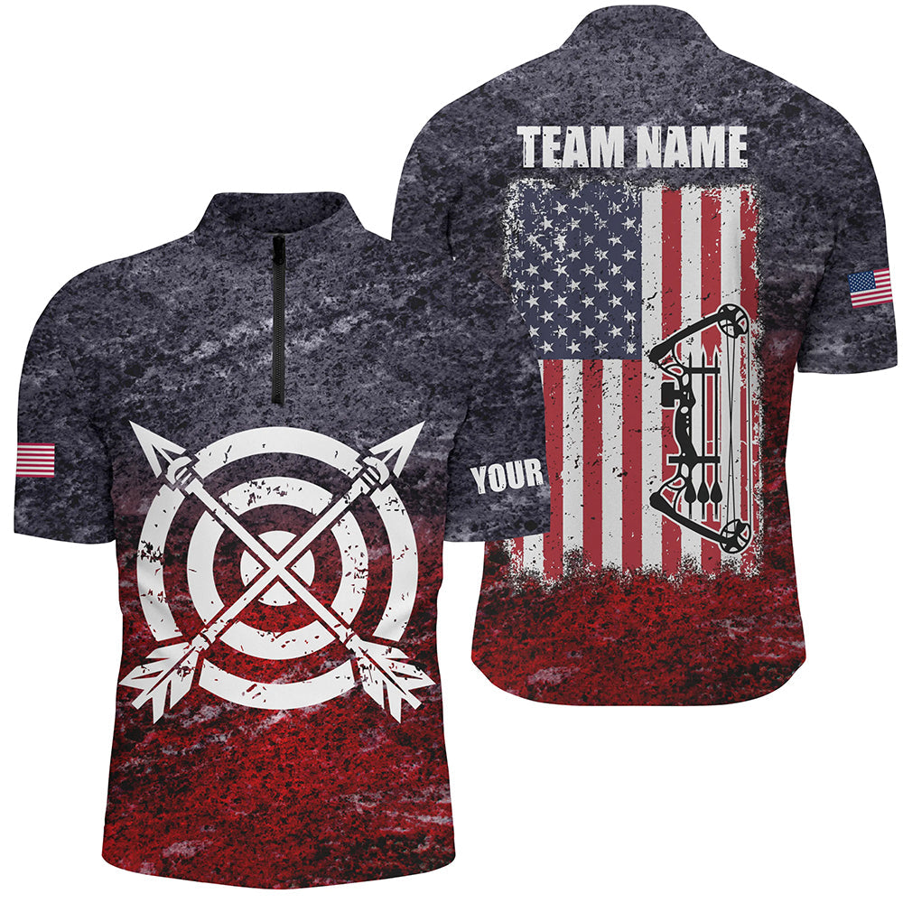 Personalized Retro USA Flag Men Archery Quarter-Zip Shirts, Patriotic US Archery Jerseys TDM1022