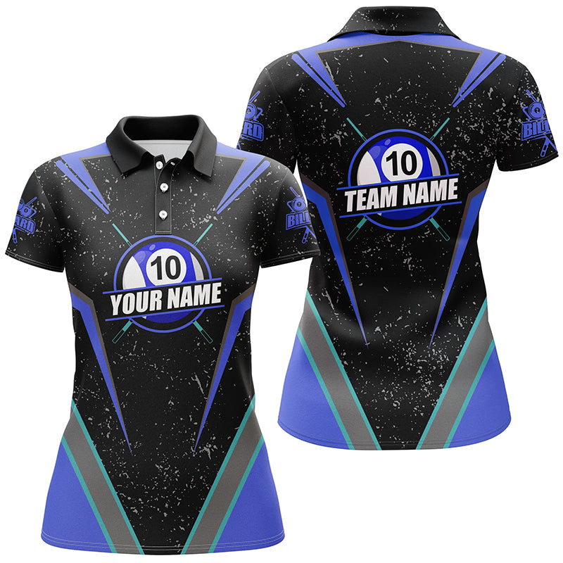 Personalized Grunge 10 Ball Billiard Polo Shirts For Women, 10 Ball Pool Billiard Jerseys For Team TDM1032