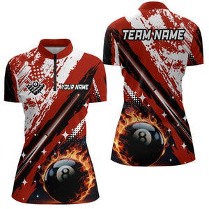 Personalized Billiard 8 Ball Pool Grunge Women Quarter-Zip Shirts, Billiard Jersey |Red TDM1040