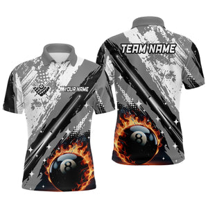 Personalized Billiard 8 Ball Pool Grunge Style Men Polo Shirts, Best Billiard Jerseys |Grey TDM1042