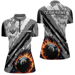 Personalized Billiard 8 Ball Pool Grunge Women Quarter-Zip Shirts, Billiard Jersey |Grey TDM1042