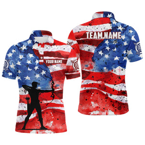 Personalized Vintage American Flag Men Archery Polo Shirts, Patriotic Archery Player Shirts TDM1048