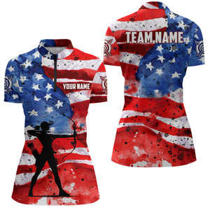 Custom Vintage American Flag Women Archery Quarter-Zip Shirt Patriotic Archery Player Shirts TDM1048