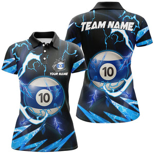 Personalized Blue 10 Ball Pool Thunder Lighting Polo Shirts For Women Custom Billiard Team Shirts TDM1056