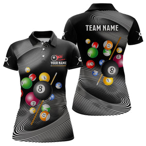 Personalized White Black Billiard Ballls 3D Polo Shirts For Women, Custom 8 Ball Pool Team Shirts VHM0784