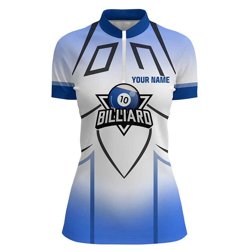 Personalized Blue 10 Ball Billiard 3D Quarter-Zip Shirts For Women, 10 Ball Pool Billiards Jerseys VHM0961