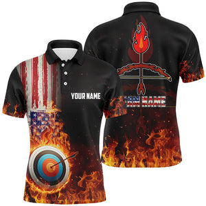 Personalized US Flag Flaming Target Archery 3D Polo Shirts For Men, Fire Bow Arrow Archery Jerseys VHM0989
