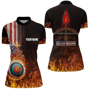 Personalized US Flag Flaming Target Archery 3D Quarter-Zip Shirts For Women, Bow Arrow Archery Shirts VHM0989
